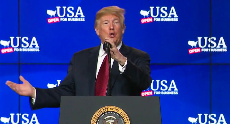 Donald Rump announcing Foxconn factory at press conference in 2018 -- MSNBC screenshot