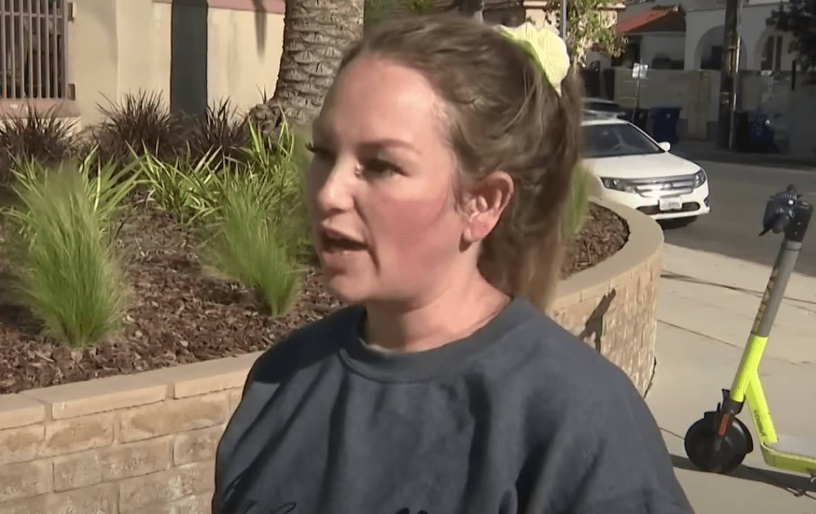 Clay-Monaghan, a cancer survivor who also has epilepsy, said the assault deprived her of air and caused her to faint. She was later rushed to UC Irvine Medical Center.