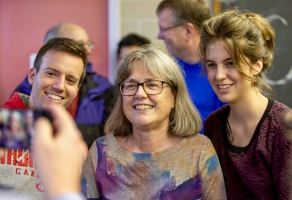 New Nobel laureate Donna Strickland (C) was honoured for her pioneering work on laser pulses