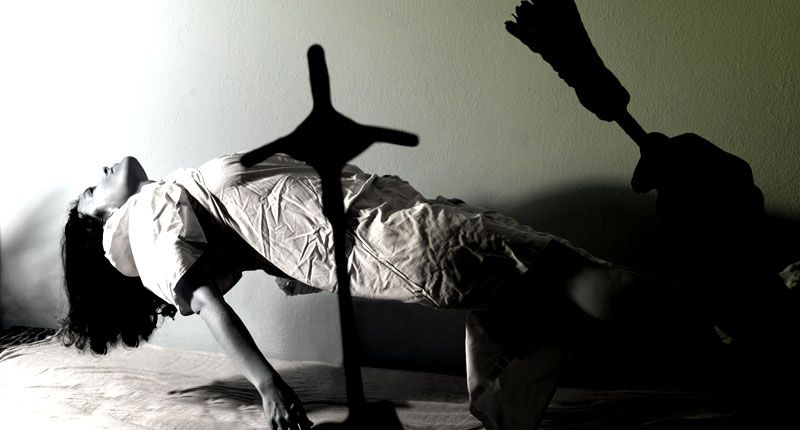 Exorcism of priest and levitation by woman possessed by devil (Shutterstock)