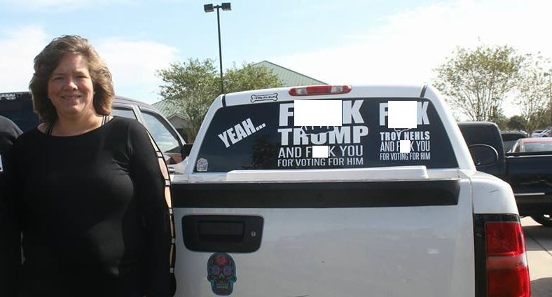 The woman targeted by the Fort Bend County, Texas sheriff for her vulgar anti-Trump truck sticker is now selling her wares online.