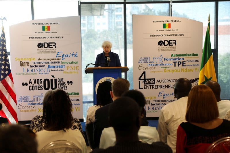 GOREE ISLAND, Senegal (Reuters) - U.S. Treasury Secretary Janet Yellen on Saturday spoke of the "unspeakable cruelty" and enduring consequences of the trans-Atlantic slave trade, but said she was heartened by signs of progress and renewal in both the United States and Africa.