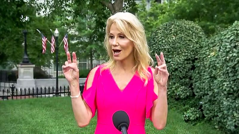 While taking questions outside the White House, NBC's Kristen Welker asked Conway about a video tweeted by Trump in which a man shouts "white power."