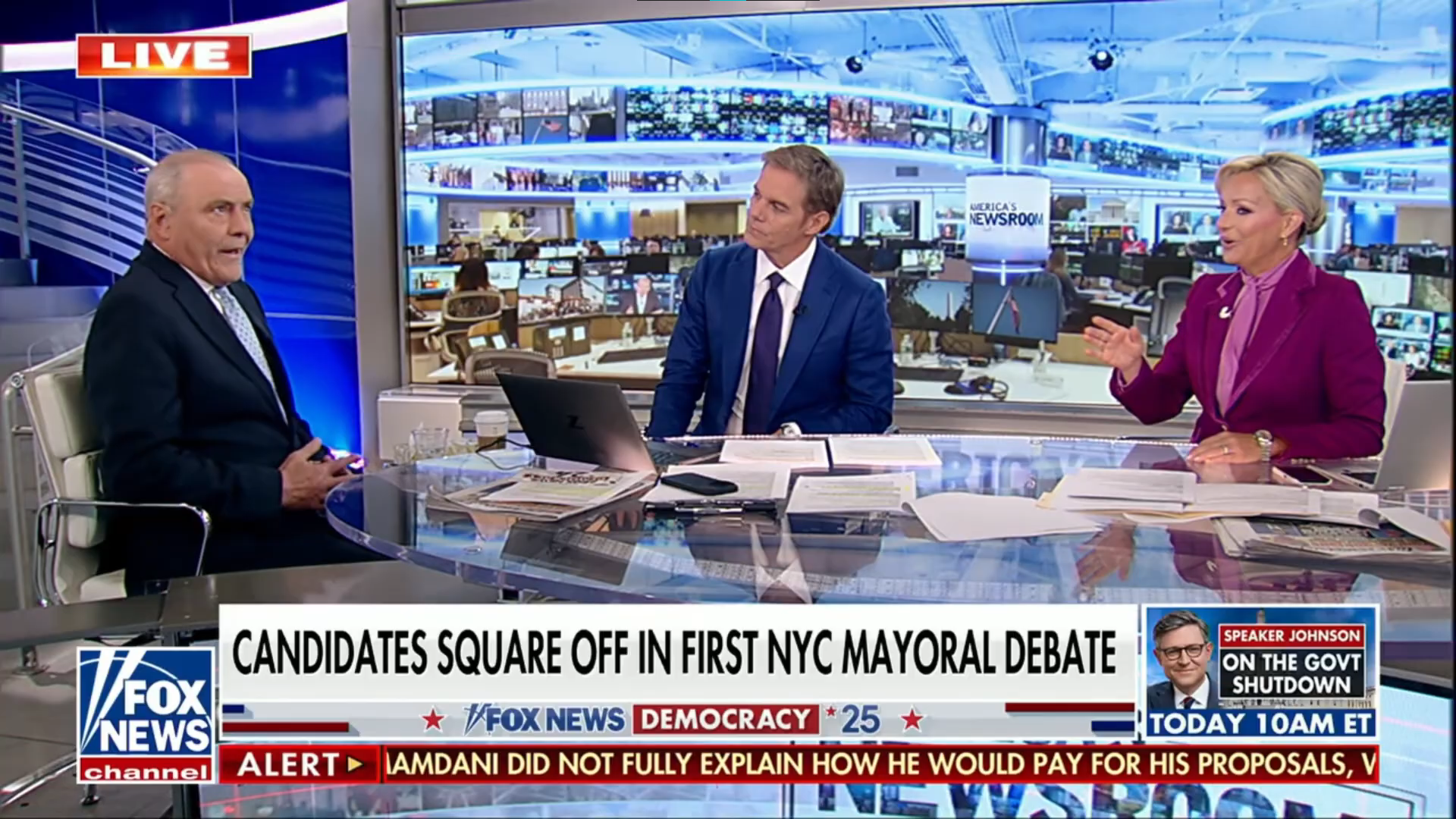 Republican New York City mayoral candidate Curtis Sliwa (left) appears on Fox News, Oct. 17, 2025. (Screengrab/Fox News)