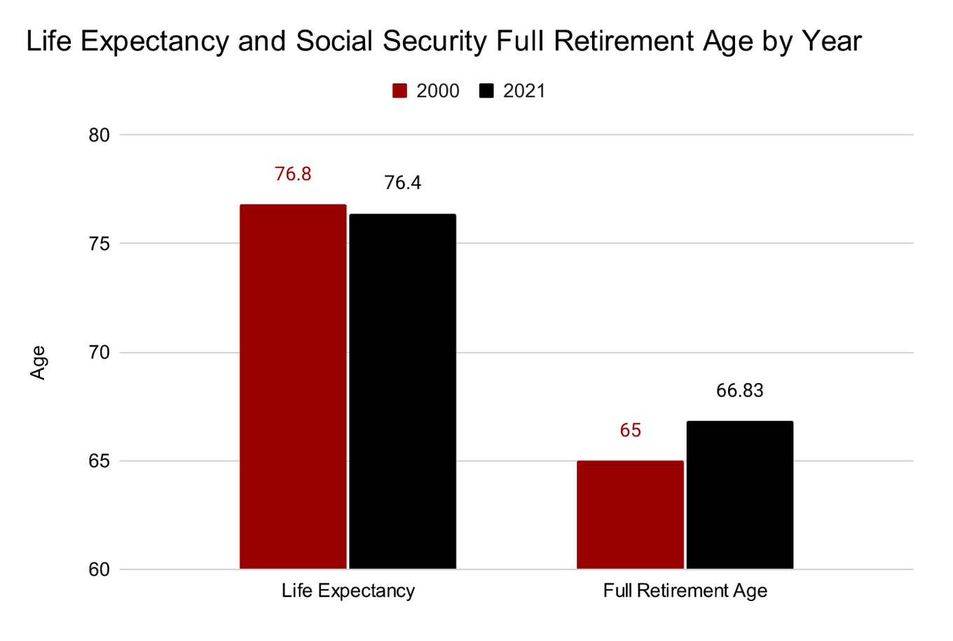 "The presumption was that the increase in life expectancy since Social Security's implementation would continue as the retirement age rose. But, in reality, something peculiar happened," Smyth wrote. "Over the same period during which the 1983 law forced the retirement age up from 65 to 67, life expectancy in the U.S. actually declined. In 2000, U.S. life expectancy was 76.8 years. According to data released last December, life expectancy in 2021 was 76.4 years. This was the second consecutive year of significant life expectancy decline."