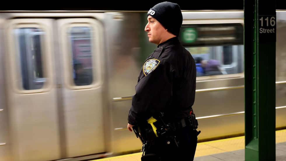 An NYPD Officer is seen at the platform at 116th Street and Lexington Avenue Subway station in New York City. - Luiz C. Ribeiro/New York Daily News/TNS