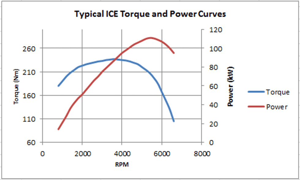 Combustion engines need to be “revved-up” to reach peak power and torque. Torque is a measure of how much rotational force can be produced, whereas power is a measure of how hard an engine has to work to produce the rotational force.