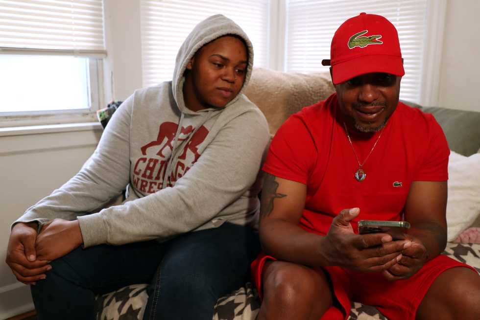 Brianna Harris-Lofton, left, and her father Lavell Ingram, look at photos of Ingram's son Kaden Harris-Ingram in Chicago on Tuesday, September 14, 2021. - Terrence Antonio James/TNS