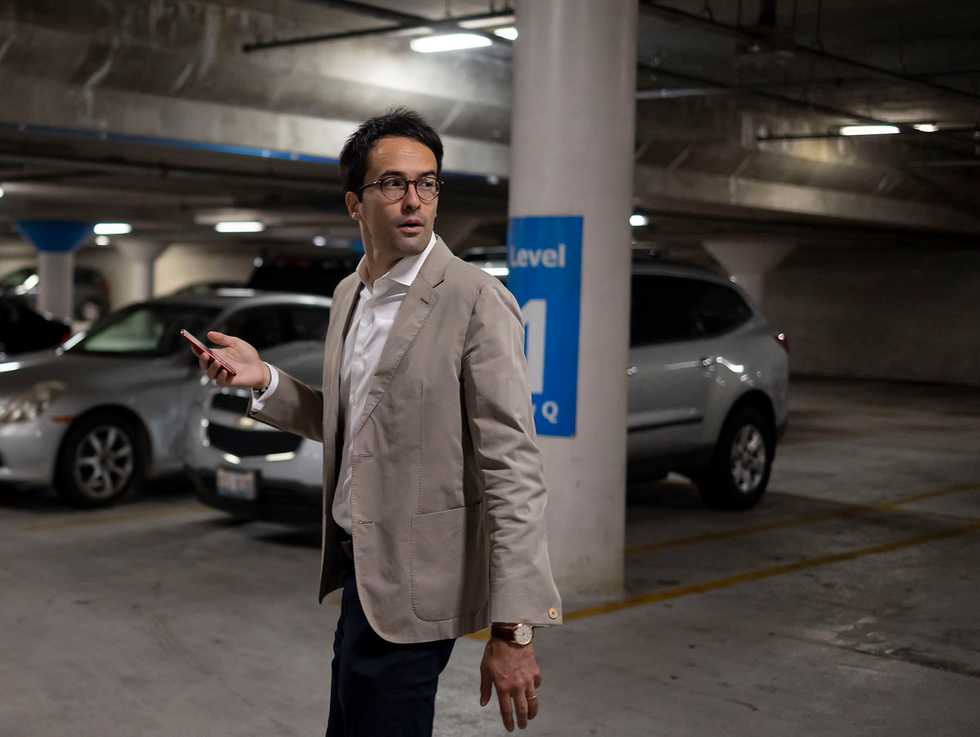Northwestern University researcher Alessandro Rotta Loria looks for temperature sensors installed by his team to monitor the heat inside the Grant Park North parking garage on July 20, 2023. - Brian Cassella/Chicago Tribune/TNS