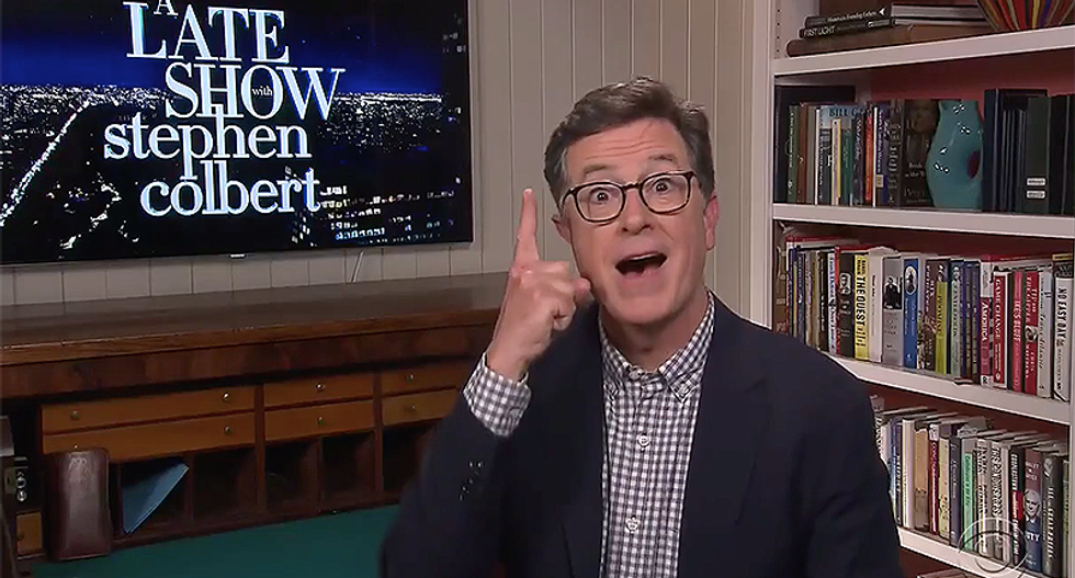 "I'd call that a self-own, but he's already 100 percent owned by corporations," Colbert joked.