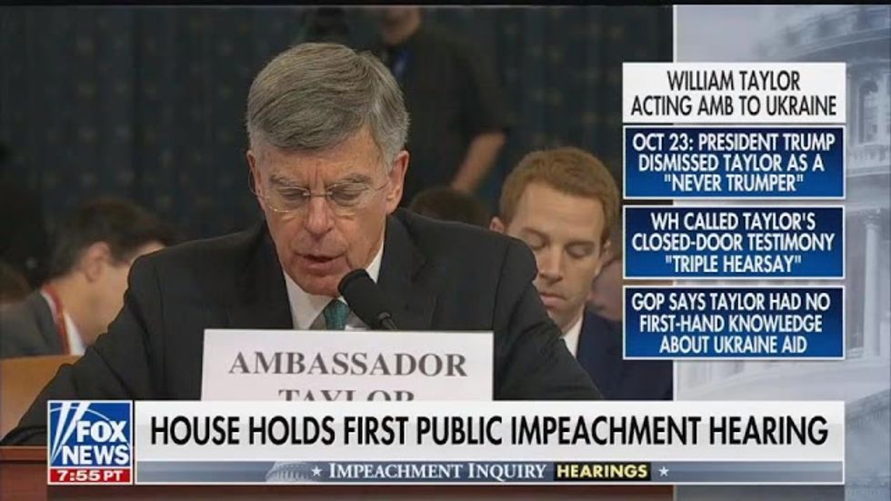 Liberal and progressive pundits — and some Never Trump conservatives as well — have been highly critical of the silly, buffoonish theatrics that Rep. Jim Jordan of Ohio, Rep. Devin Nunes of California and other far-right House Republicans brought to the first public testimony in the impeachment inquiry against President Donald Trump. But then, Jordan and Nunes weren’t trying to win over liberals, progressives or anti-Trump conservatives on Wednesday, November 13, when they aggressively attacked the testimony of two diplomats: Ambassador William B. Taylor (top U.S. ambassador to Ukraine) and the U.S. State Department’s George P. Kent (deputy assistant secretary for European and Eurasian affairs). They were playing to Trump’s hardcore MAGA base, pushing emotional buttons rather than relying on substance.