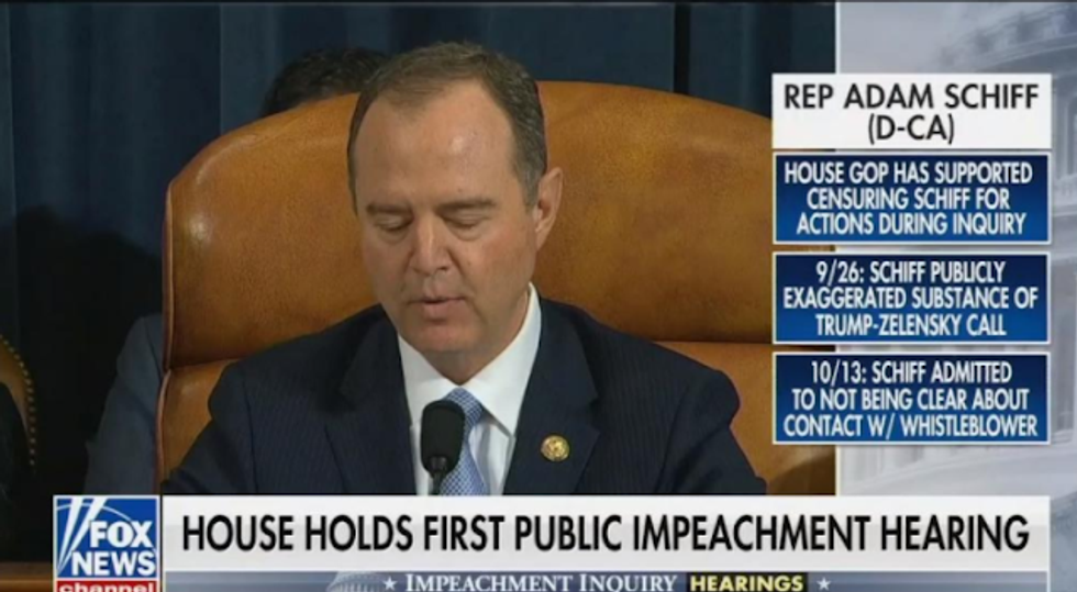 The three prime time hosts at Fox News hosts invoked conspiracy theories and lobbed personal attacks about the appearances of Democrats lawmakers participating in the impeachment inquiry against President Donald Trump in lieu of attacking the substance of the testimony given on the first day of public hearings.