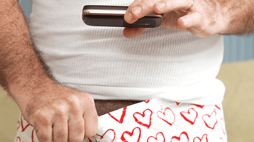 [Image: Man sexting a picture of his "weiner," or penis with his cellphone via Shutterstock]
