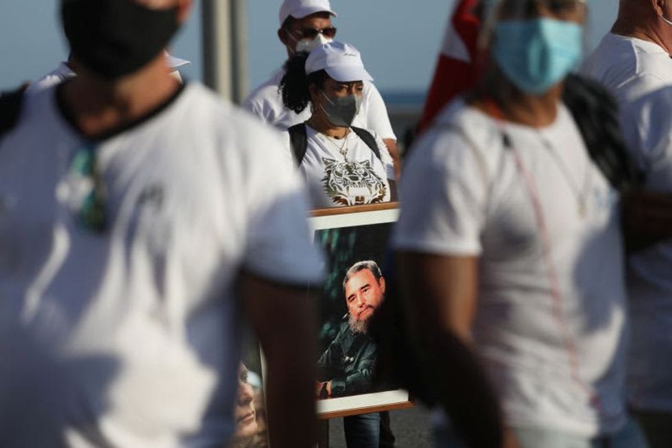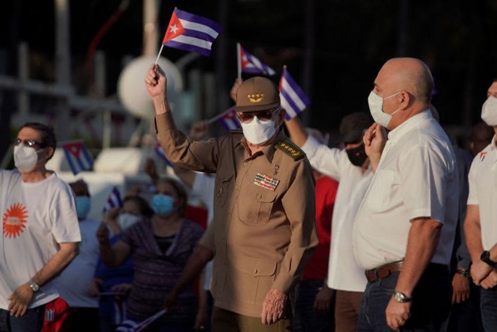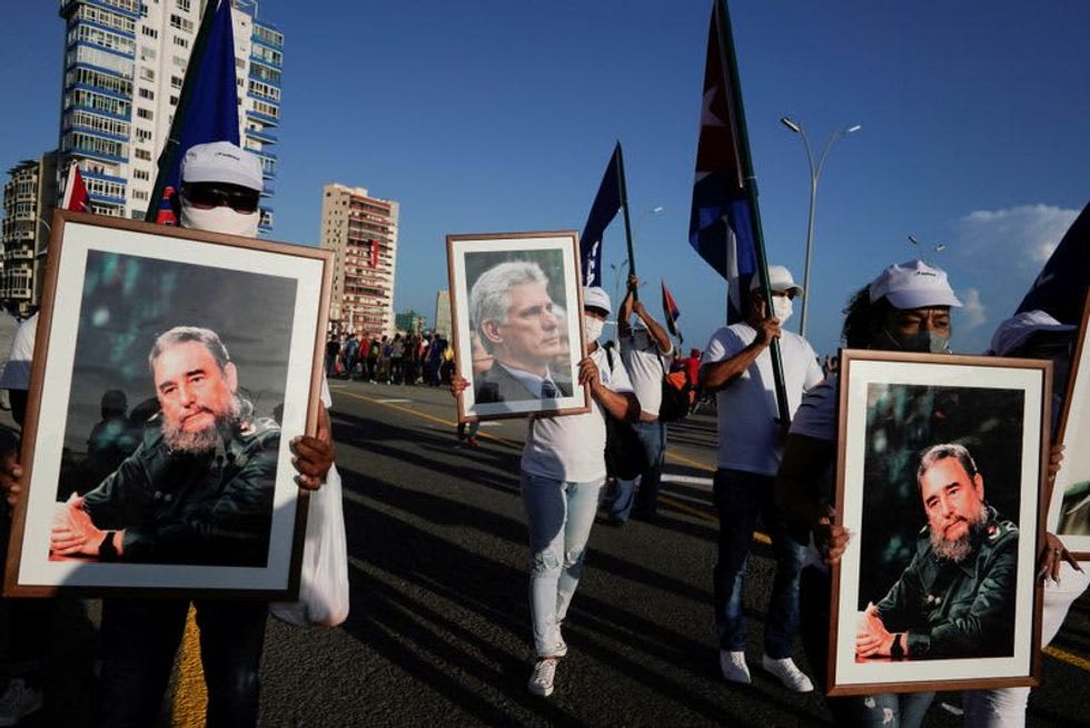 Government supporters gathered on the city's seafront boulevard before dawn to wave Cuban flags and photos of late revolutionary leader Fidel Castro and his brother Raul. The latter retired as Communist Party leader in April but promised to continue fighting for the revolution as a "foot soldier".