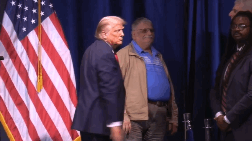 Former President Donald Trump appeared to be in a good mood on Monday, dancing his way across a New Hampshire stage before addressing the crowd about the terror attacks that struck Israel.