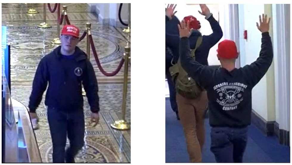 Marcos Panayiotou inside the U.S. Capitol on Jan. 6, 2021. (Images from the FBI)