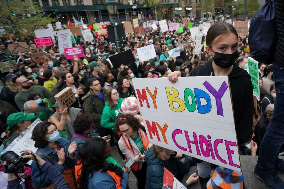 New York (AFP) - Displaying placards with slogans like "My body, my choice," thousands protested in New York City late Tuesday after a leaked draft ruling indicated that the Supreme Court planned to end nationwide legal abortion.