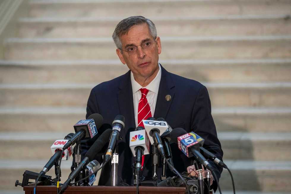 Georgia Secretary of State Brad Raffensperger makes remarks during a news conference at the Georgia State Capitol building in Atlanta on Dec. 2, 2020. - Alyssa Pointer/Atlanta Journal-Constitution/TNS