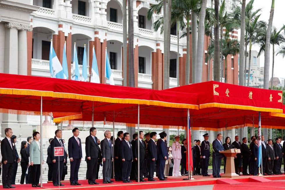 Speaking at a welcoming ceremony outside Taiwan's presidential office, Giammattei said Guatemala and Taiwan were "brotherly countries" and important allies.
