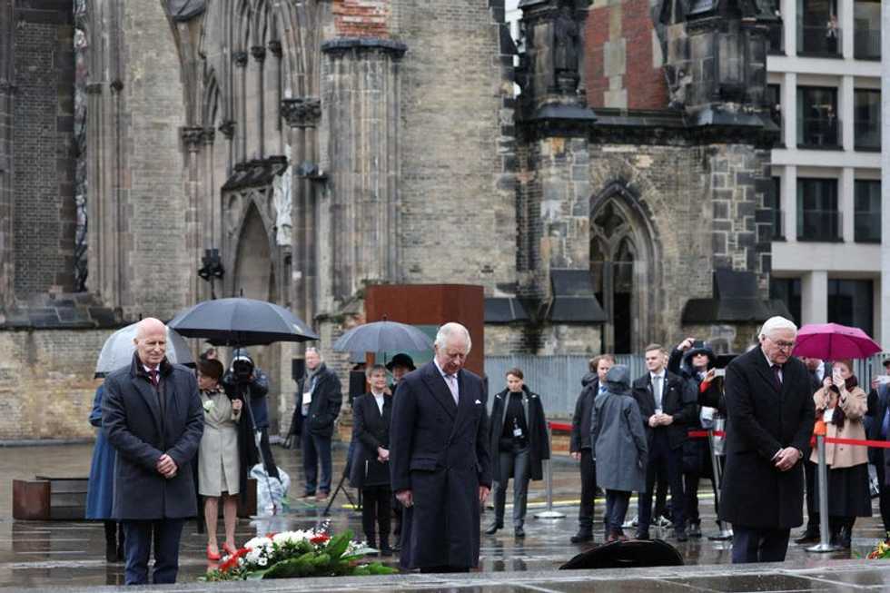 HAMBURG, Germany (Reuters) - King Charles laid a wreath in memory of the victims of the allied bombing in World War Two during a visit to Hamburg's St Nikolai memorial, the remains of a church in Germany's northern port city severely damaged by the air raids.