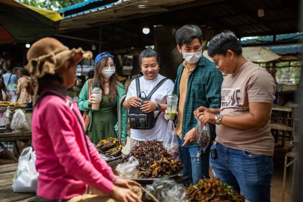 Cambodians have been eating tarantulas and other bugs for decades. The tradition stems from the hardships people endured during the brutal Khmer Rouge years in the late 1970s, when food was scarce and people resorted to eating insects to stave off hunger.