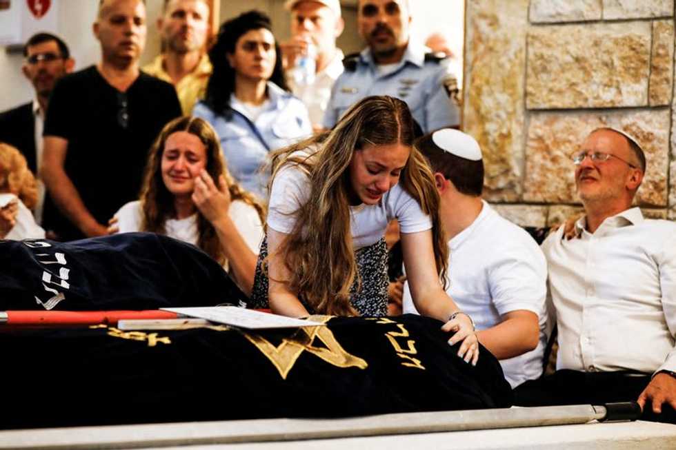 KFAR ETZION, West Bank (Reuters) - The family of two Israeli sisters who were killed in a shooting attack in the occupied West Bank shared tearful eulogies on Sunday with a room full of weeping mourners, while their mother who was wounded remained in a coma. Maia and Rina Dee, 20 and 15, who were also British citizens, died on Friday when their car was shot at by a suspected Palestinian gunman. Israeli forces are still trying to track the assailant down. The sisters' father, Leo, broke down in tears as he spoke before the crowd that had gathered in the Jewish settlement of Kfar Etzion for the ...