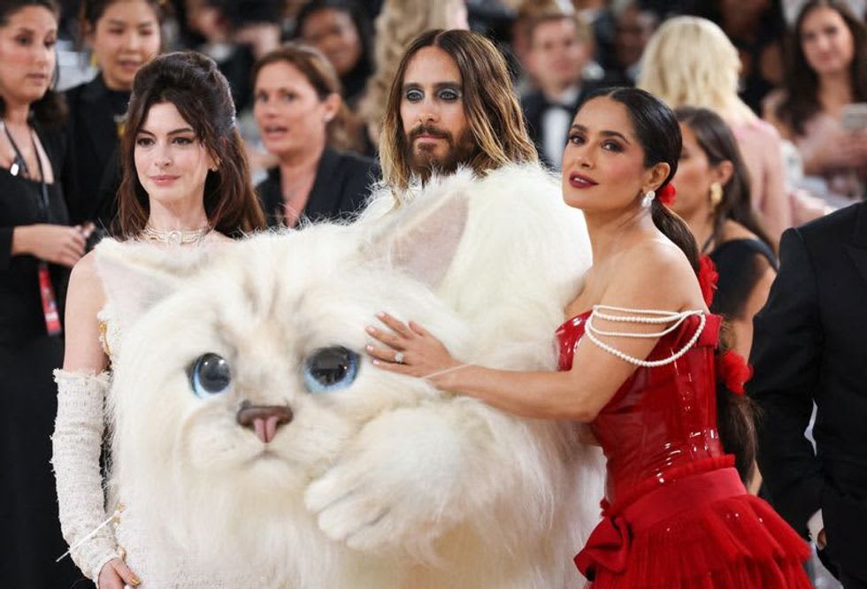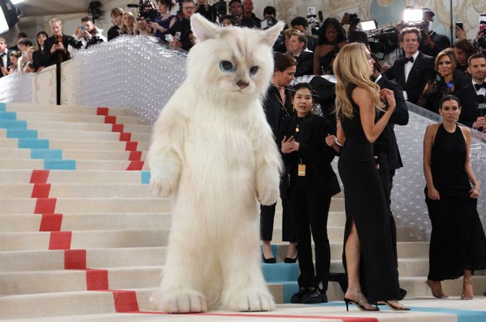 NEW YORK (Reuters) -An enormous fluffy, white, blue-eyed Burmese cat mascot ascended the Metropolitan Museum of Art steps on Monday in homage to Karl Lagerfeld’s beloved pet “Choupette,” who later revealed himself as actor Jared Leto, bringing a whole new meaning to this year’s Met Gala dress code “in honor of Karl.”