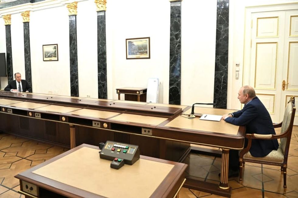 Russian President Vladimir Putin (R) meets with Foreign Minister Sergei Lavrov. -/Kremlin/dpa