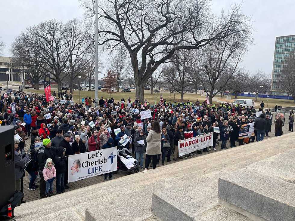 Anti-abortion activists gather at the steps of the Kansas State Capitol Tuesday. - Katie Bernard/Kansas City Star/TNS