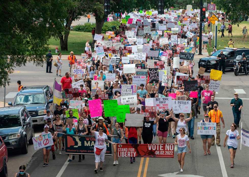 Abortion rights supporters march in Wichita in 2022 in the lead-up to Kansas' vote on a constitutional amendment. - Travis Heying/The Wichita Eagle/TNS