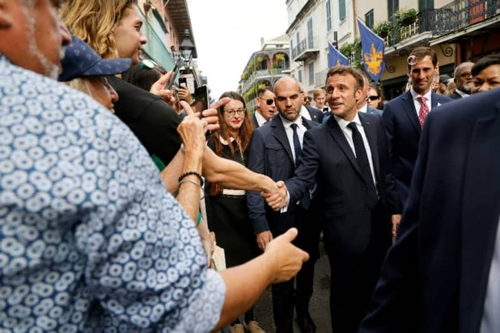 The day after a lavish reception at the White House that sealed the "friendship" of the French president with his US counterpart, Joe Biden, he landed in the Louisiana city for a brief stop.