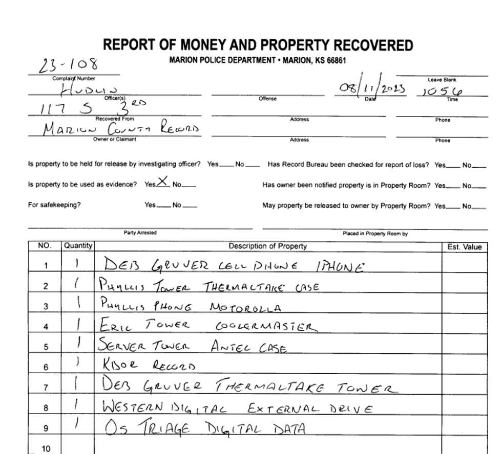 It's visible on a property receipt released by the 8th District Court, but the paper's lawyer, Bernie Rhodes, said that it wasn't among the items returned to the paper. The objects the police were required to hand back were all taken during a raid by local police on Aug. 11.