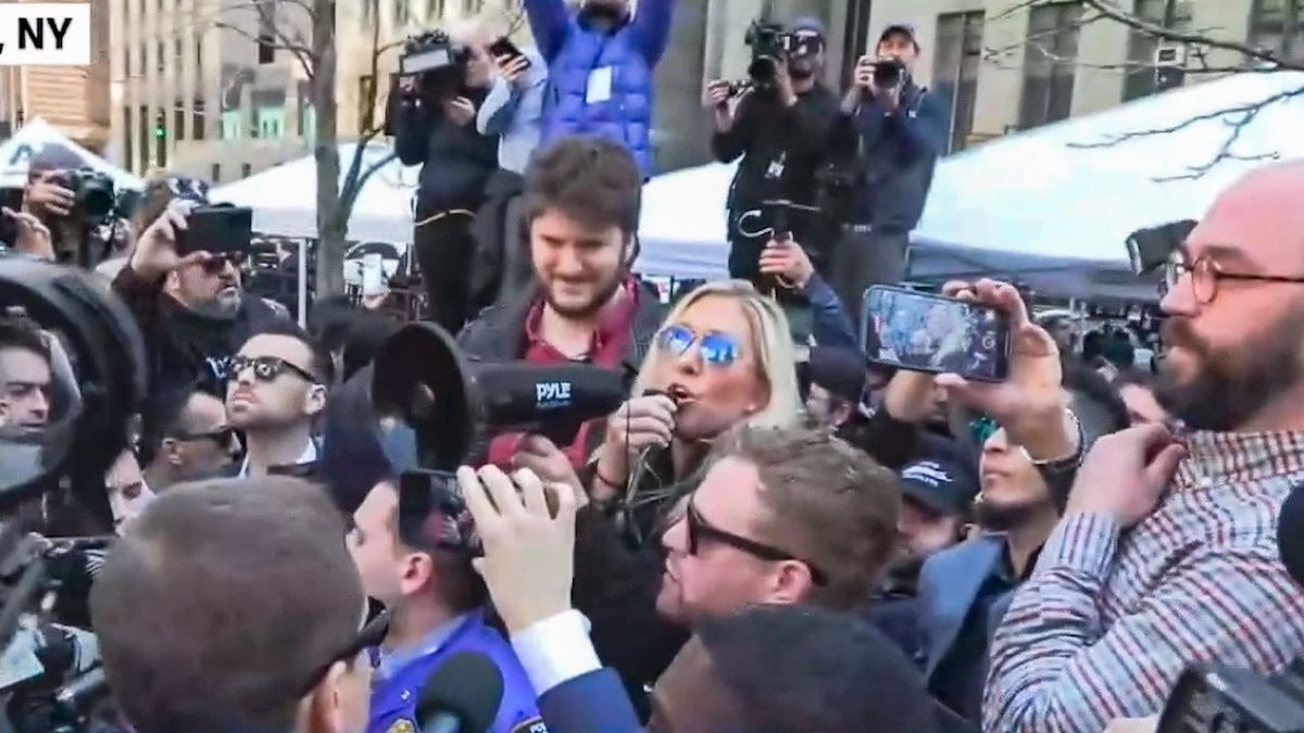 Rep. Marjorie Taylor Greene (R-GA) quickly fled a New York City protest after giving a speech in defense of former President Donald Trump.