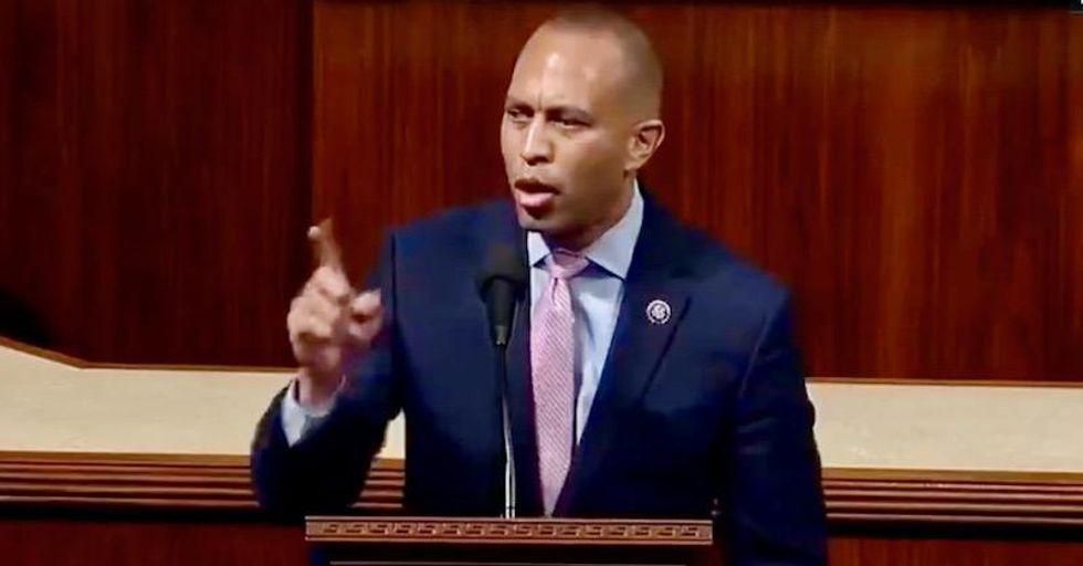 “House Republicans have turned what should be a meaningful investment in our men and women in uniform into an extreme and reckless legislative joyride," Jeffries, Clark, and Aguilar said Thursday. "The bill undermines a woman's freedom to seek abortion care, targets the rights of LGBTQ+ service members, and bans books that should otherwise be available to military families."