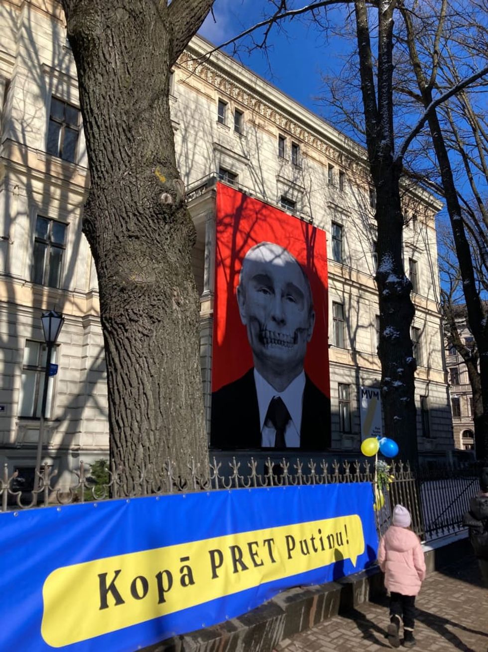 This section of the street was recently renamed "Ukrainian Independence Street" by the Riga city council in another protest against the war.