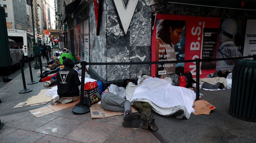 Hundreds of migrants are seen sleeping outside the Roosevelt Hotel in Midtown Manhattan early Monday July 31, 2023, in New York. - Luiz C. Ribeiro/New York Daily News/TNS