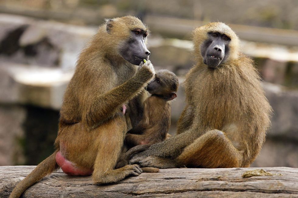 A group of baboons eat on a tree trunk in their enclosure at the zoo in Nuremberg. Nuremberg Zoo plans to cull individuals from its troop of baboons to manage the population and to counter inbreeding, director Dag Encke announced in the southern German city on -8 Februay. Daniel Karmann/dpa