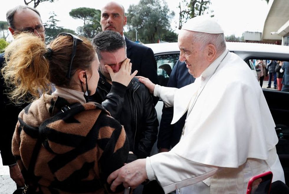 ROME (Reuters) - Pope Francis left hospital to return to the Vatican on Saturday after being treated for bronchitis, waving to wellwishers and the waiting media as he was driven away.
