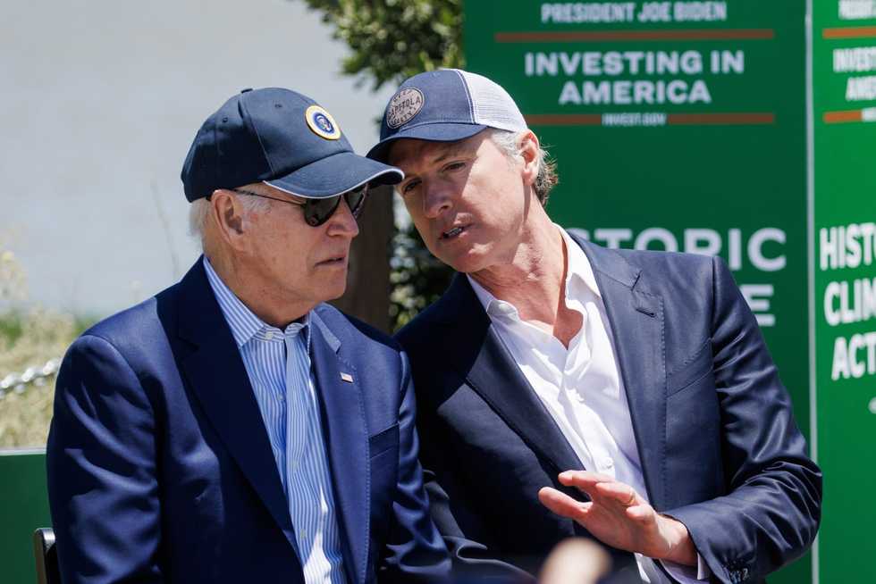 Gavin Newsom, right, talks with President Joe Biden during Biden's visit to Baylands Nature Preserve on June 19, 2023, in Palo Alto, California. - Dai Sugano/Bay Area News Group/TNS