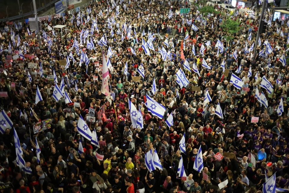 There was also loud criticism of Israeli Prime Minister Benjamin Netanyahu and calls for new elections. Protesters held banners and signs aloft reading "Negotiate now, resign later."