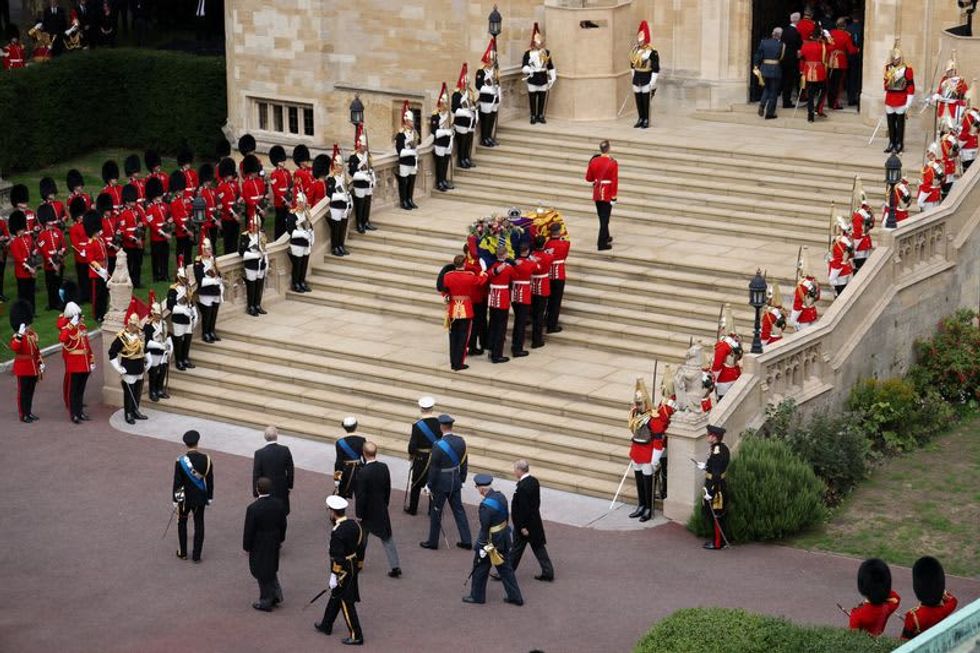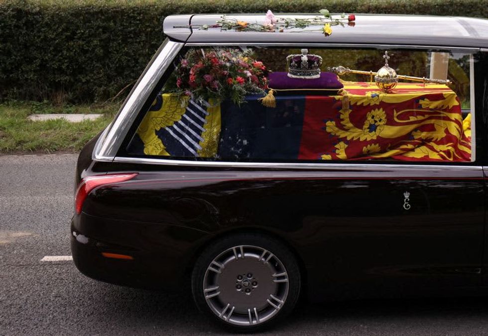 WINDSOR, England (Reuters) -Queen Elizabeth's coffin arrived at Windsor Castle, her final resting place, on Monday after a day of matchless pageantry that drew world leaders to her funeral and hundreds of thousands of people to the streets to say farewell to a revered monarch.