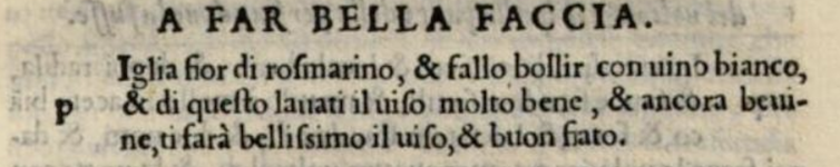 The recipe is entitled, A far bella faccia, or, to make a beautiful face.