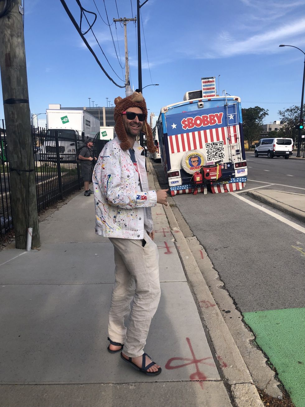 Damien Nichols of the “Kennedy Across America Tour” outside of the Democratic National Convention. (Photo by Alexandria Jacobson/Raw Story)