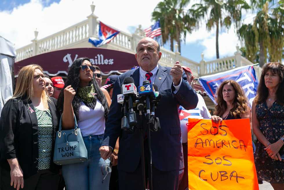 Former New York City Mayor Rudy Giuliani speaks during a press conference outside of the Versailles Restaurant in Miami's Little Havana neighborhood on Monday, July 26, 2021. - Matias J. Ocner/TNS