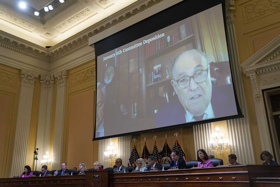 Rudolph W. Giuliani appears onscreen during Monday’ s hearing by the House committee investigating the Jan. 6, 2021, insurrection. - Kent Nishimura/Los Angeles Times/TNS