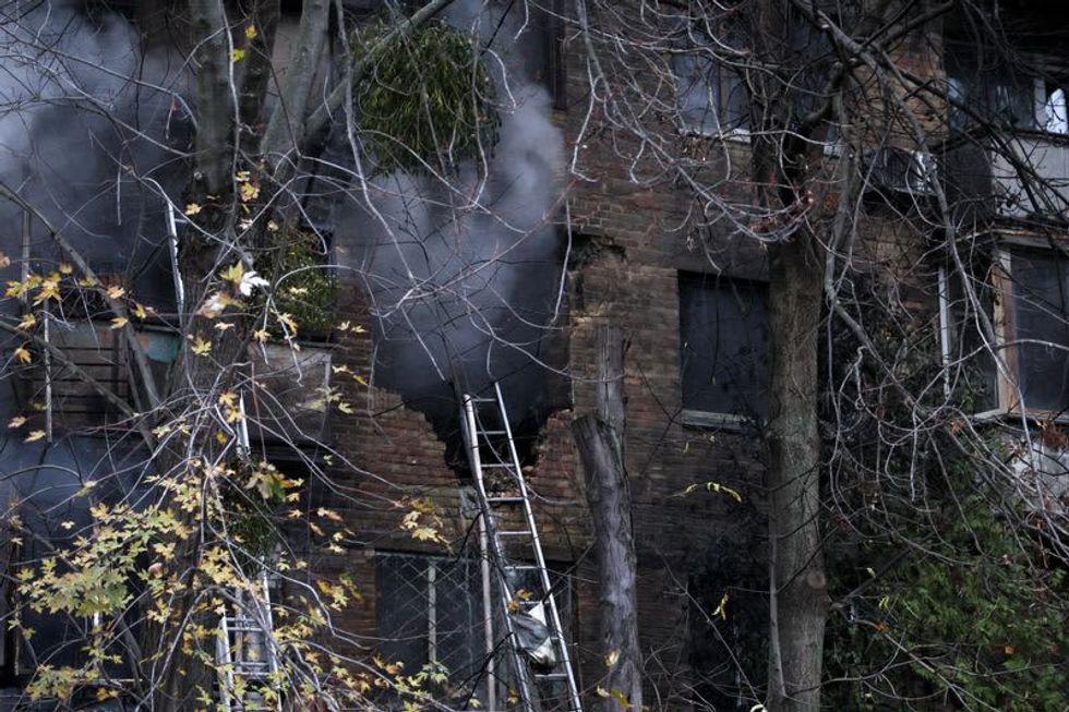 A body was pulled out of a residential building that was hit and set ablaze in central Kyiv, and a senior presidential official said the power situation was "critical" after heavy damage to energy infrastructure.