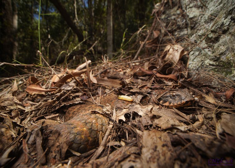 A common death adder (Acanthophis antarcticus) in an ambush position at Mount Glorious, Queensland. Christina N. Zdenek
