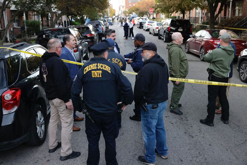 Philadelphia Police officers at the crime scene on the 800 Block of N. 10th Street after three SWAT officers were reportedly shot while serving a warrant. - Alejandro A Alvarez/The Philadelphia Inquirer/TNS