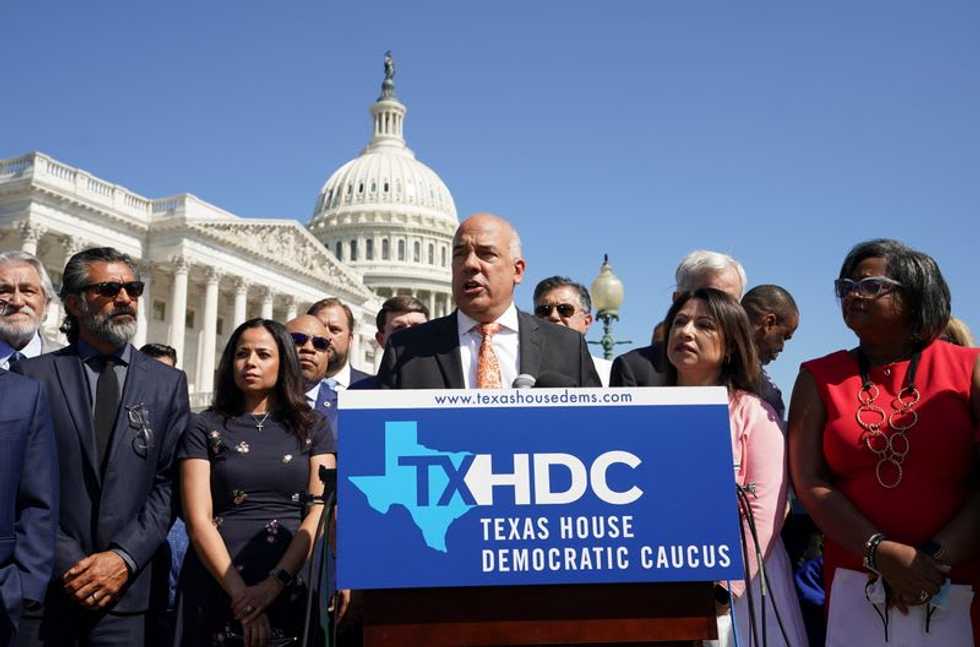 "Our intent is to stay out and kill this bill this session," Texas House Democratic Caucus Chairman Chris Turner told a news conference outside the U.S. Capitol, where dozens of Texas Democratic lawmakers broke into the civil rights anthem, "We Shall Overcome."