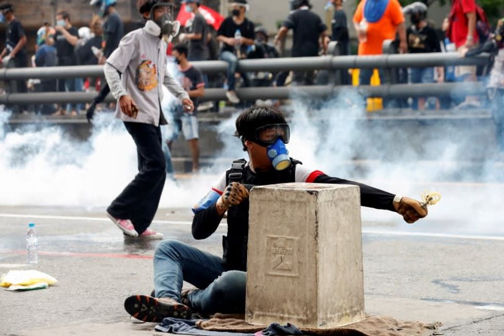 BANGKOK (Reuters) -More than a thousand Thai anti-government protesters clashed with police on Saturday, as they demonstrated against the government's failure to handle coronavirus outbreaks and its impact on the economy.
